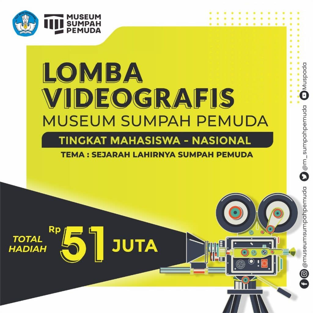 Museum Sumpah Pemuda menyelenggarakan Lomba Videografis Tingkat Mahasiswa Nasional Tahun 2021. Berikut ketentuan lomba Videografis: